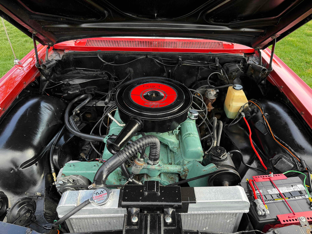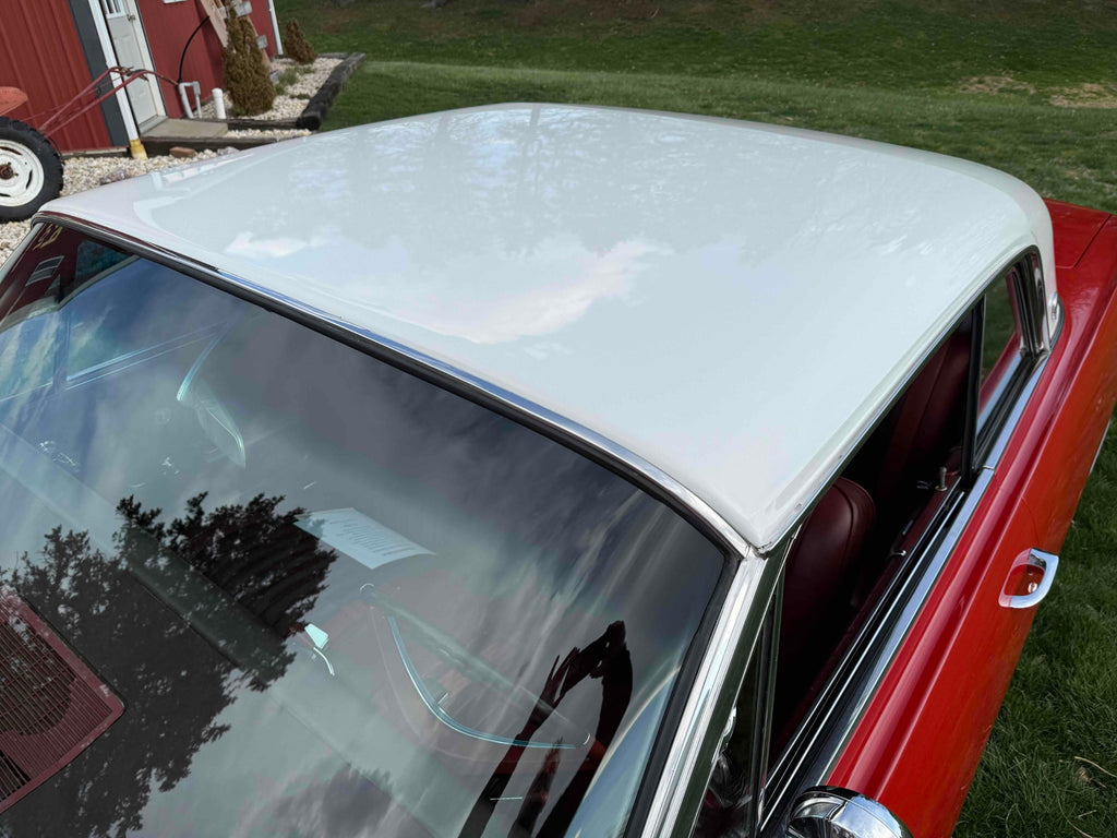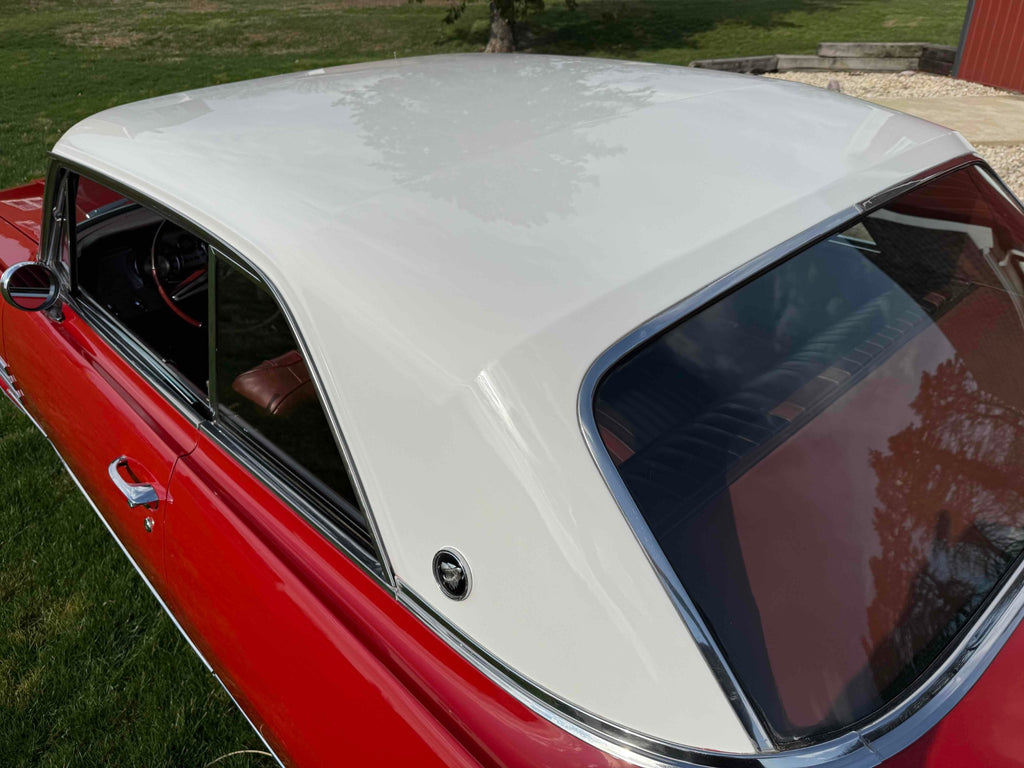 Built at the Kansas City plant and purchased new at Charles White Motors in Aurora, Missouri. Finished in very nice and correct code ‘VC' Granada Red with an Arctic White painted roof. Very nice and correct code '427' Maroon interior.