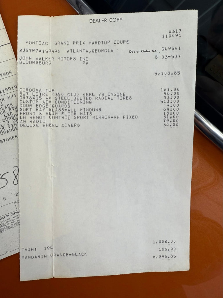 Really nice Pontiac finished in rarely seen Code '78' Mandarin Orange with a correct black vinyl top.