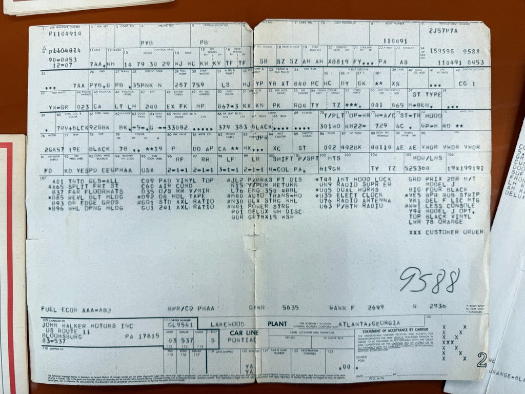 Sold new at John Walker Motors in Bloomsburg, PA.