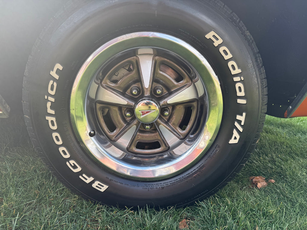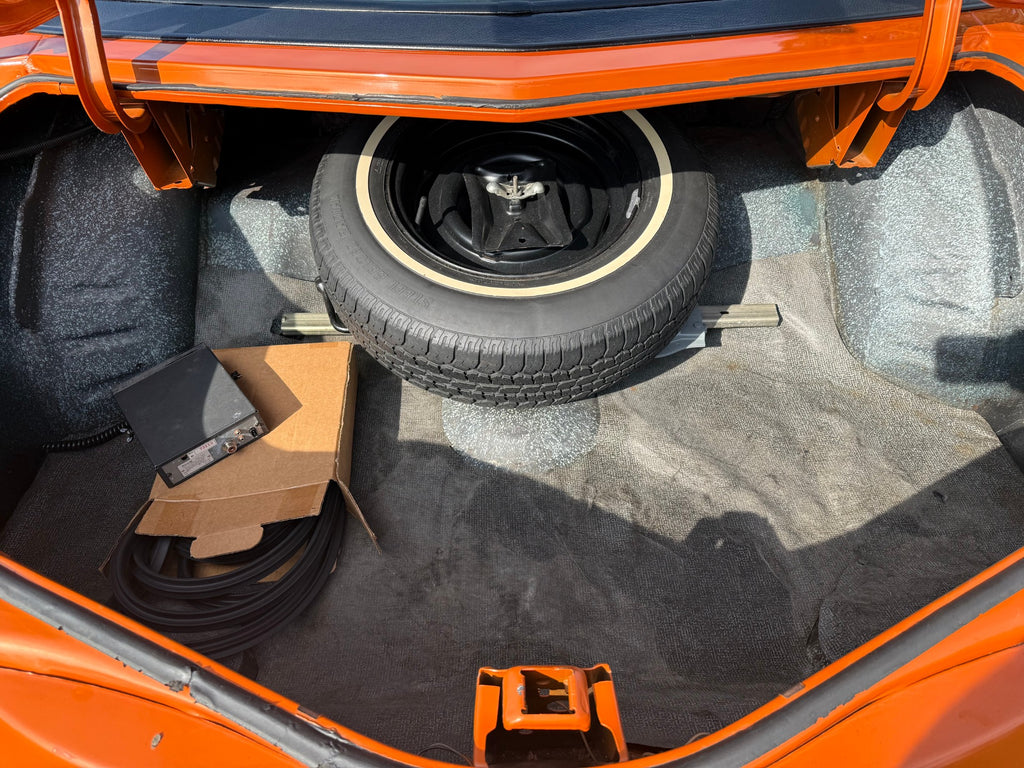 Ralley wheels. AM Radio with an 8-track player. Custom air conditioning. Remote mirror. Door edge guards.