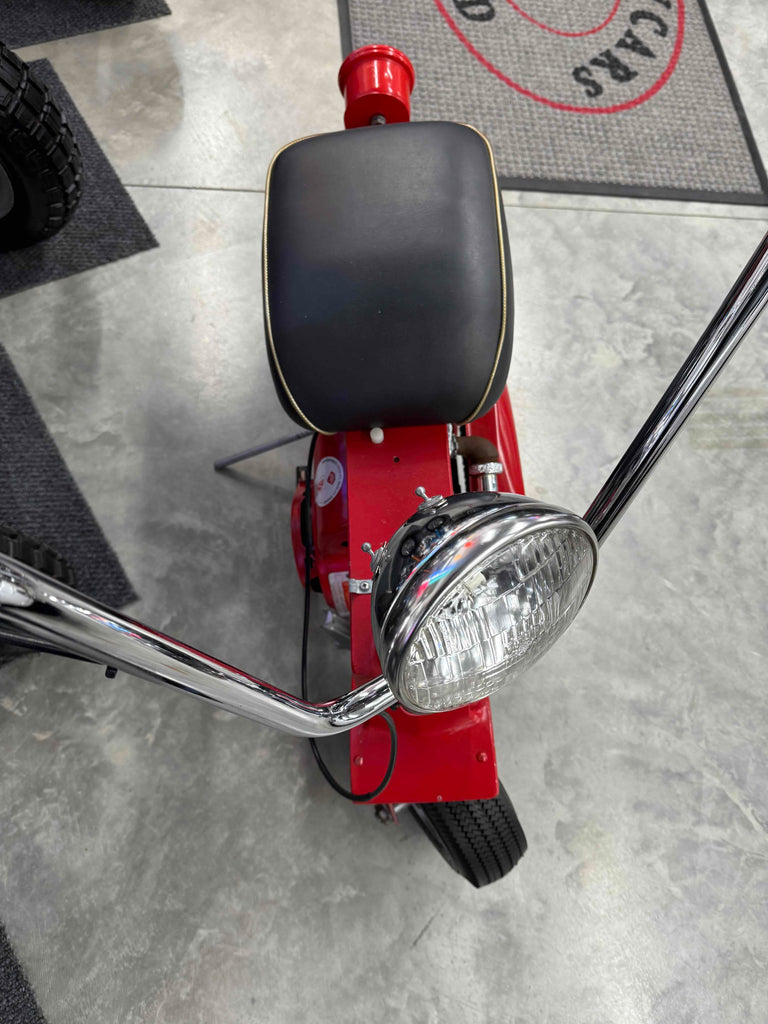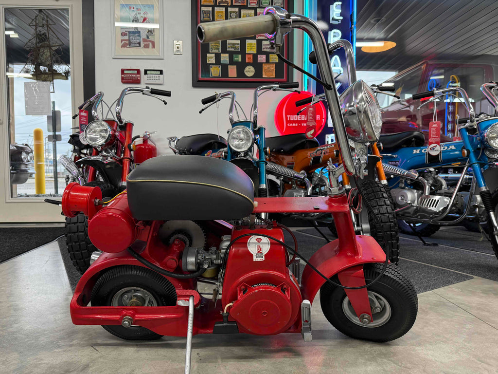 Really nice, rarely seen mini bike that had a nice restoration at some point, but has a few chips and scratches. Runs nice. Very unique!No title, bill of sale only
